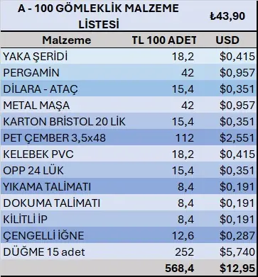 Karton, yaka şeridi, çember, OPP için malzeme ve ebat tercihleri de yapılıp, yeniden fiyatlama talep edebilirsiniz.